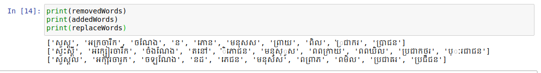 correctWords = ['សួស្តី', 'អក្សរចារឹក', 'ចំណែង', 'នៅ', 'ភោជន', 'មនុស្ស', 'ពព្រាយ', 'ពពិល', 'ប្រជាករ', 'ប្រជាជន']