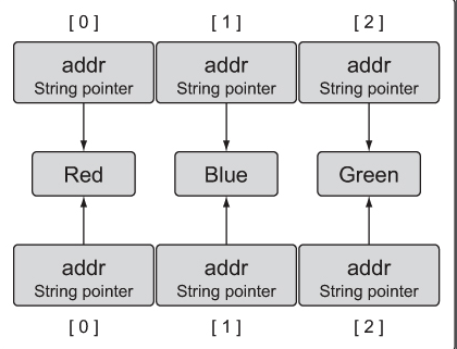 // Khai báo một mảng con trỏ string có 3 phần tử.