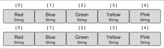 array2 := [5]string{"Red", "Blue", "Green", "Yellow", "Pink"}