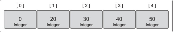 Bạn có thể xem ví dụ bên dưới minh hoạ về mảng (array). Những phần tử của một mảng được đặt bên trong một chiếc hộp màu grey và được đặt liên tiếp nhau. Mỗi phần tử có cùng kiểu, trong ảnh minh hoạ nó là một integer, và nó có thể được truy cập thông qua một vị trí duy nhất