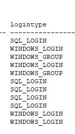 Từ tệp kết quả, tìm kiếm từ khoá “SQL Login” thường có trong mục “logintype”. Đảm bảo rằng giá trị trả về xác thực các tài khoản không còn sử dụng SQL Login nữa mà sử dụng phương thức an toàn như “Windows login”.