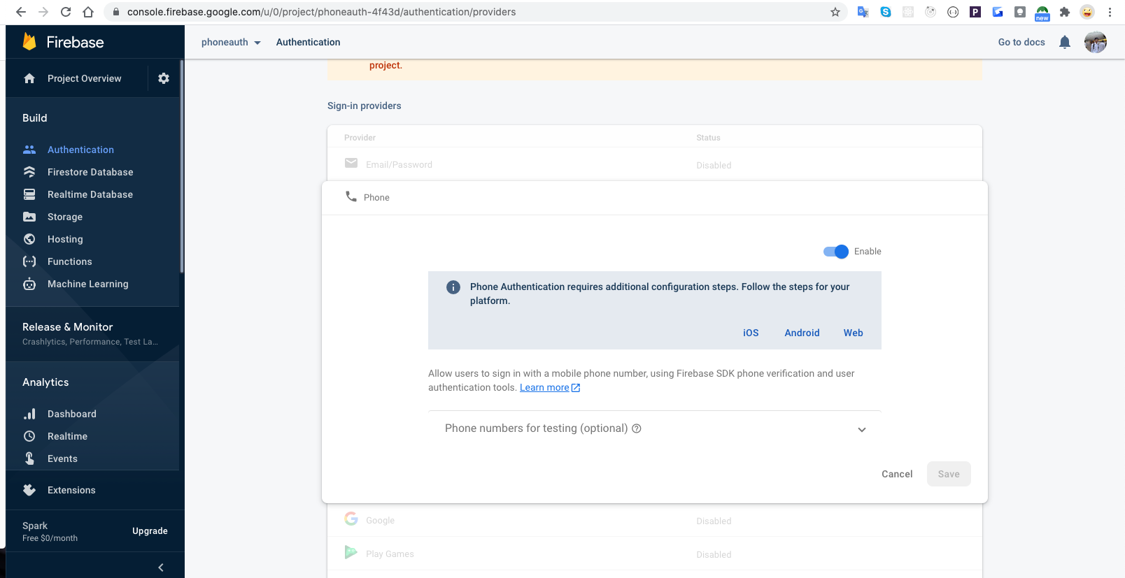 Ở trong Phone numbers for testing (optional) dành cho testing. Nó sẽ giúp mình test thoải mái không mất phí hoặc quota. Bạn có thể nhập Phone number và verification code vào.