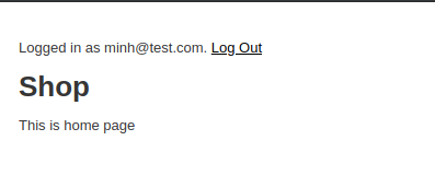 <% if current_user %> Logged in as <%= current_user.email %>. <%= link_to "Log Out", logout_path %> <% else %> <%= link_to "Sign Up", signup_path %> or <%= link_to "Log In", login_path %> <% end %> <h1>Shop</h1> <p>This is home page</p>