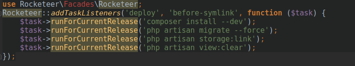 $ rocketeer deploy --on=staging --branch=develop // Nếu trên môi trường staging với branch develop