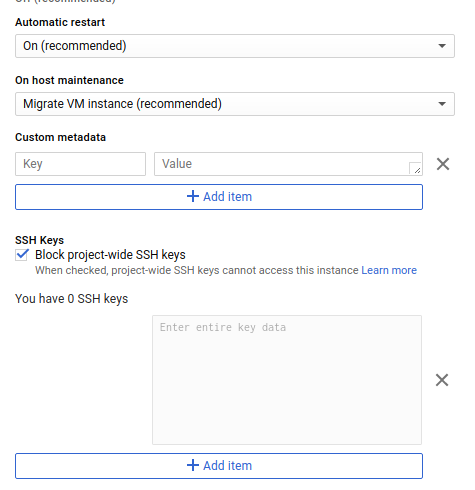 - Với Google Cloud server, bạn vào edit instance của bạn, kéo xuống dưới, có chỗ dán public key cho bạn như hình: