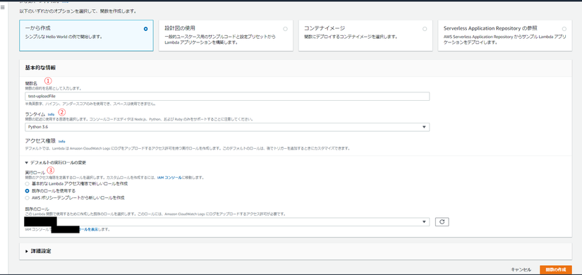③ 選択するロールの権限でLambda作成