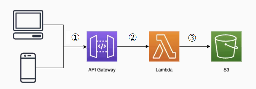 APIGateWay → Lambda → S3を概要的に紹介した。