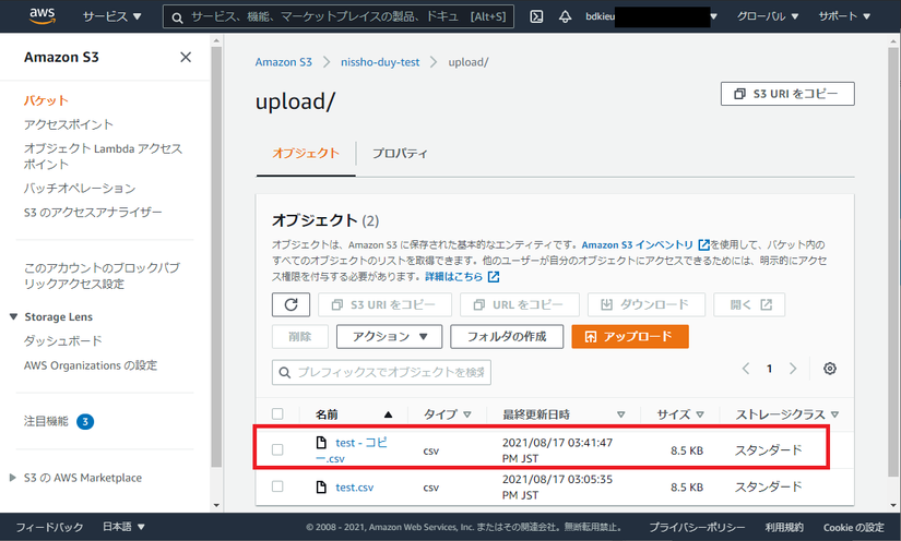 - 貰ったpresigned_urlによりファイルをアップロード実行する