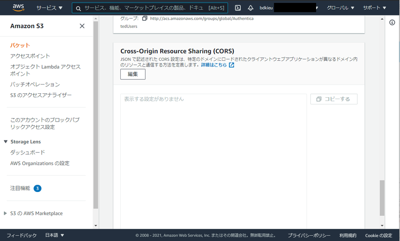 原因:s3にCORS設定していない。