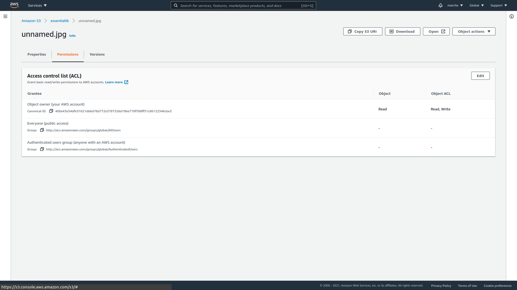 Nếu bạn chọn public một object nào đó thì link ở trong mục Object URL ở tab Properties của object có thể được sử dụng để truy cập object đó.