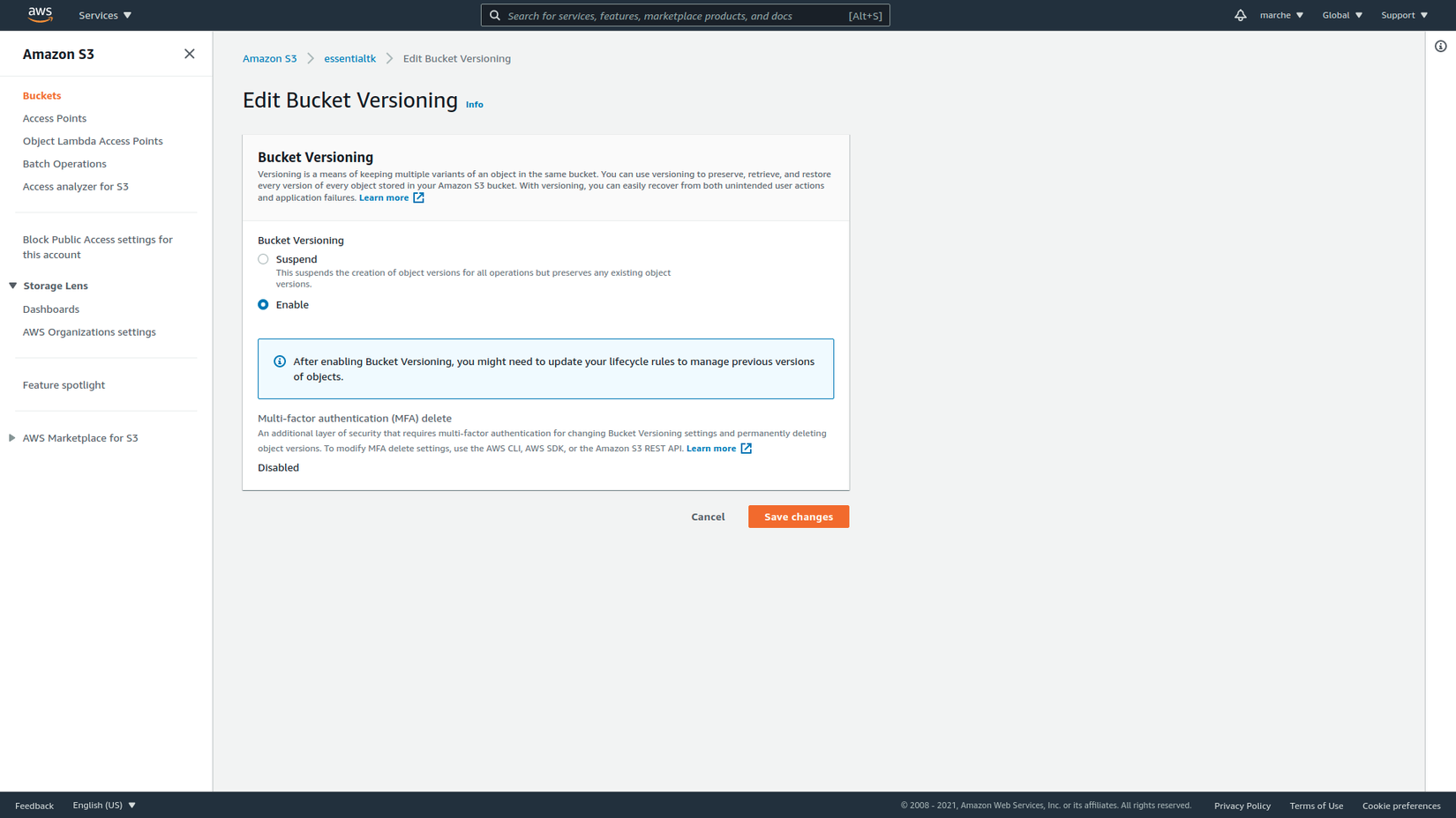 Bạn có thể lựa chọn ON hoặc OFF tính năng versioning. Tuy nhiên, một khi đã bật tính năng này thì sau đó bạn chỉ có thể dừng việc tạo phiên bản chứ không thể hoàn toàn tắt tính năng này đi. Có nghĩa là bạn chỉ có thể dừng lại việc tạo ra thêm các phiên bản của object, còn các phiên bản đã được tạo ra trước đó sẽ vẫn tồn tại trong storage.