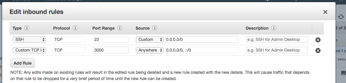 - Vì server Rails chạy trên cổng 3000 nên trước tiên chúng ta sẽ tiến hành mở cổng này cho server.