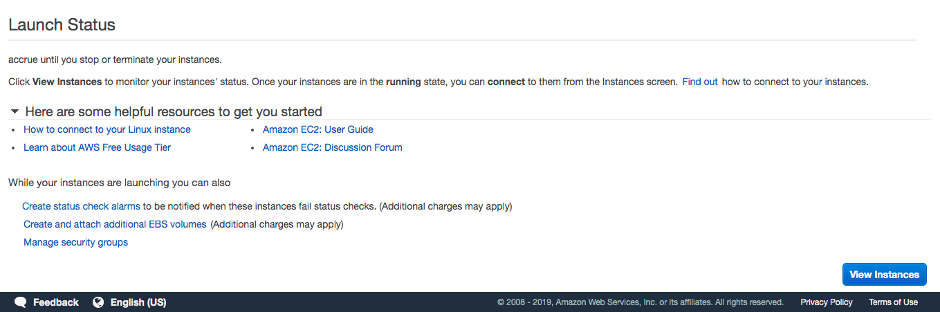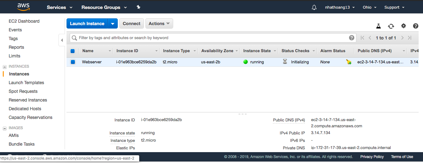 - Như vậy là mình đã tạo xong được 1 Instance EC2 (coi như mục đích 1 đã hoàn thành)