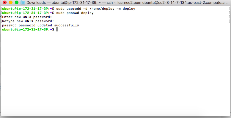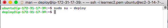 - Sau khi add quyền sudo cho user deploy thành công, ta chuyển qua user này để thực hiện cài đặt môi trường
