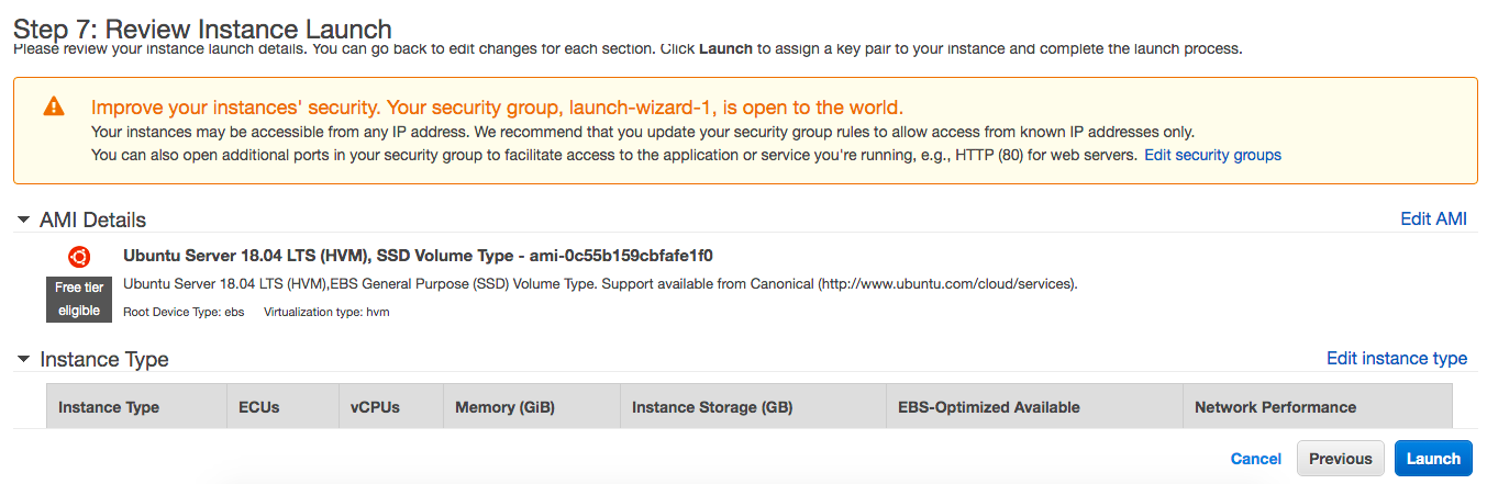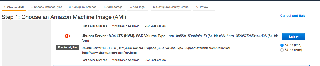 - Step 1: Choose an Amazon Machine Image (AMI) -> Ở bước này, cho phép chúng ta lựa chọn các dạng server (có ubuntu, linux, window...)