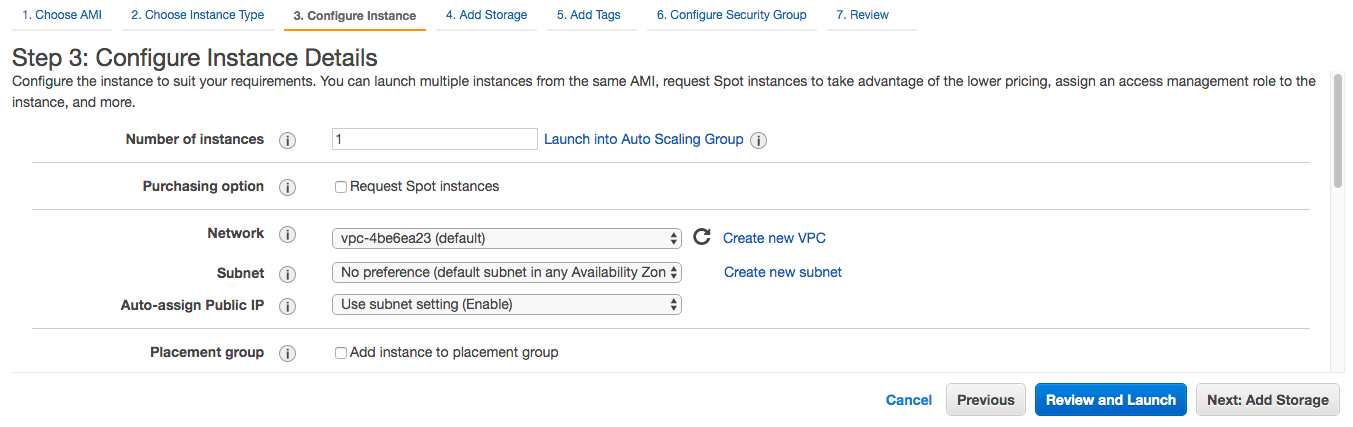 - Step 3: Configure Instance Details -> Bước này mình giữ nguyên default và chọn Next