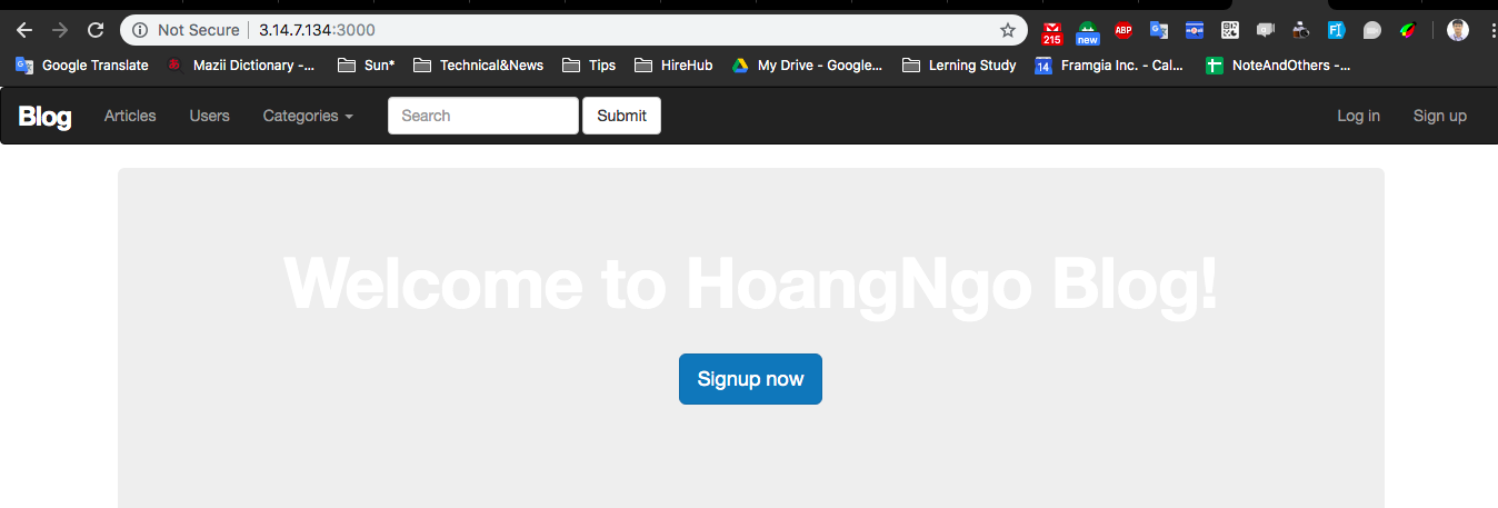 - Truy cập vào web app qua URL: http://3.14.7.134:3000