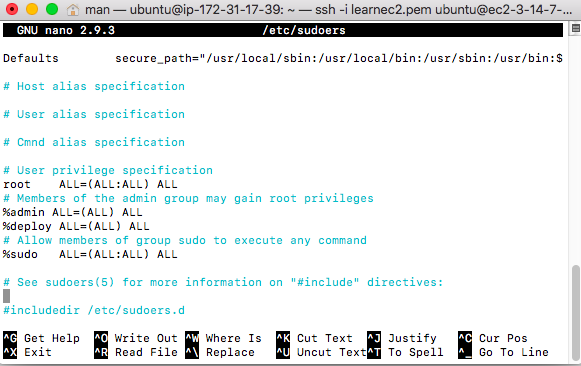 và thực hiện add thêm đoạn text %deploy ALL=(ALL) ALL