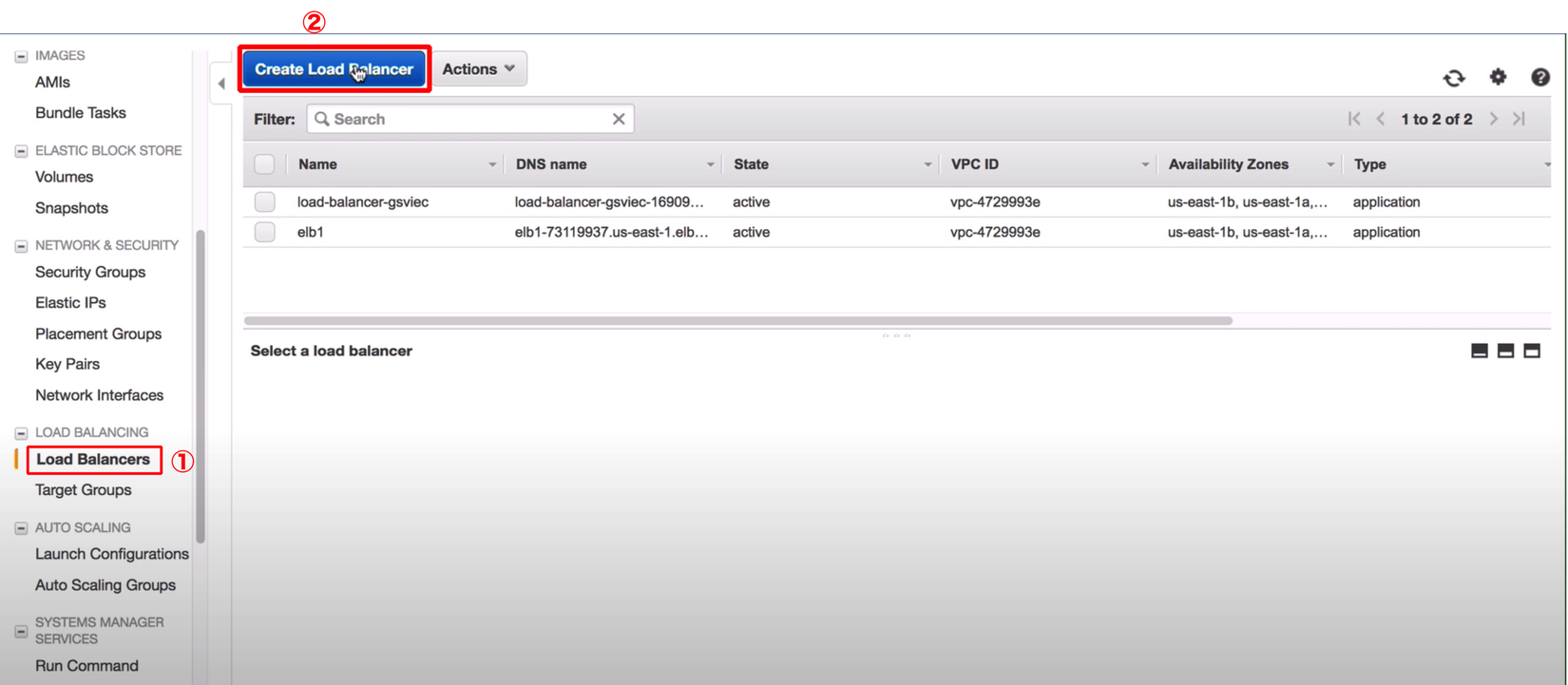- Click vào Create Load Balancer trên màn hình Load Balancer