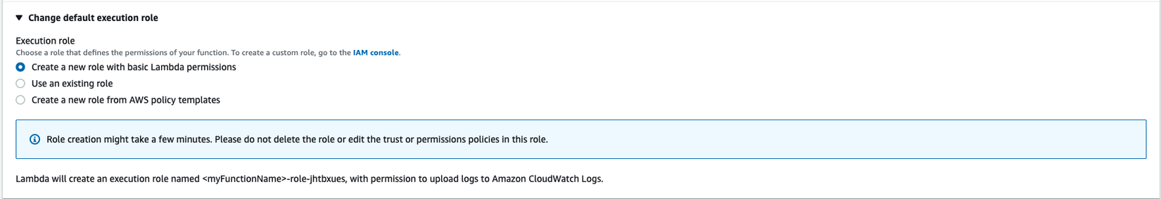 - Chọn hoặc chỉnh sửa execution role (nếu cần thiết)