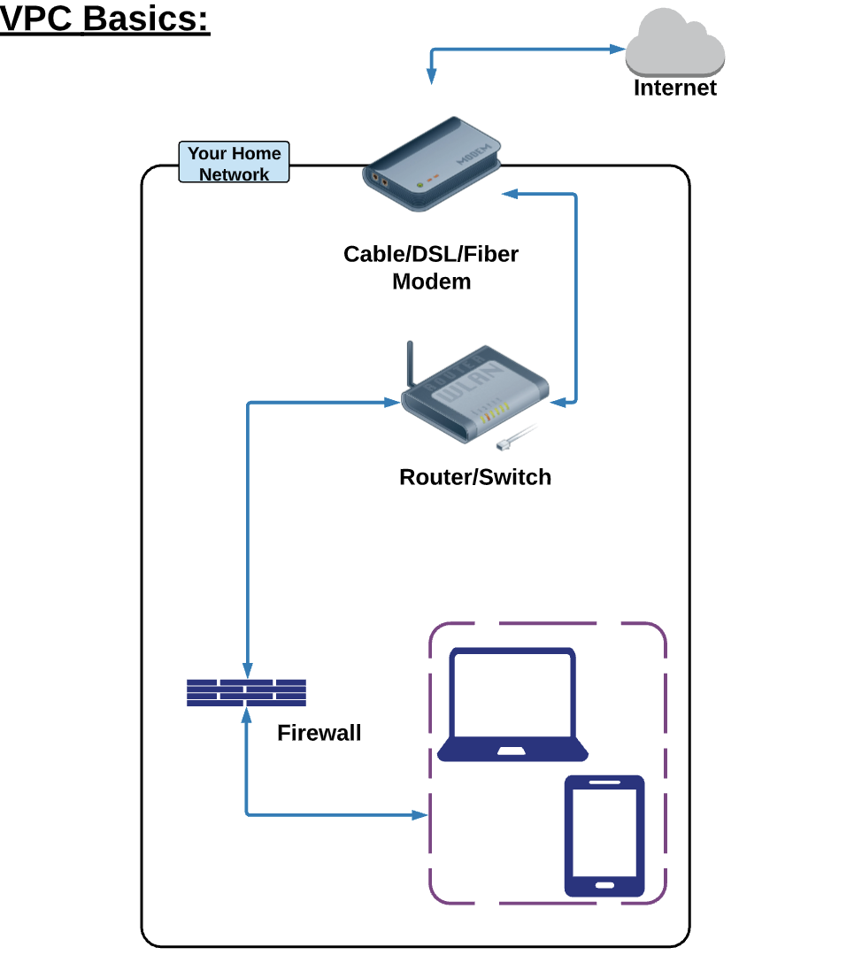 VPC Basics: Để cho mọi người có một cái nhìn tổng quan và đẩy đủ về các thành phần cơ bản của VPC cũng như chức năng của từng phần. Mình sẽ đưa ra một ví dụ so sánh trực quan mà ít nhiều ai cũng có những hiểu biết nhất định: Đó là Home Network