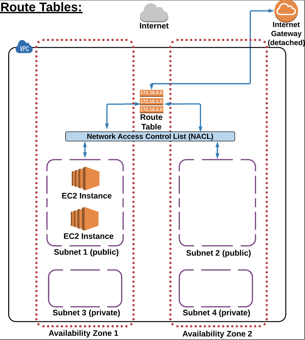- Data sẽ dược truyền tới Route Table, và Route table sẽ quyết định sẽ redirect kết nối này nên tới đâu.