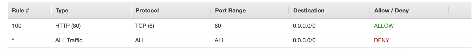 - (4) Bất kì NACLs nào được add mới thì default sẽ là DENY toàn bộ kết nối của Subnets