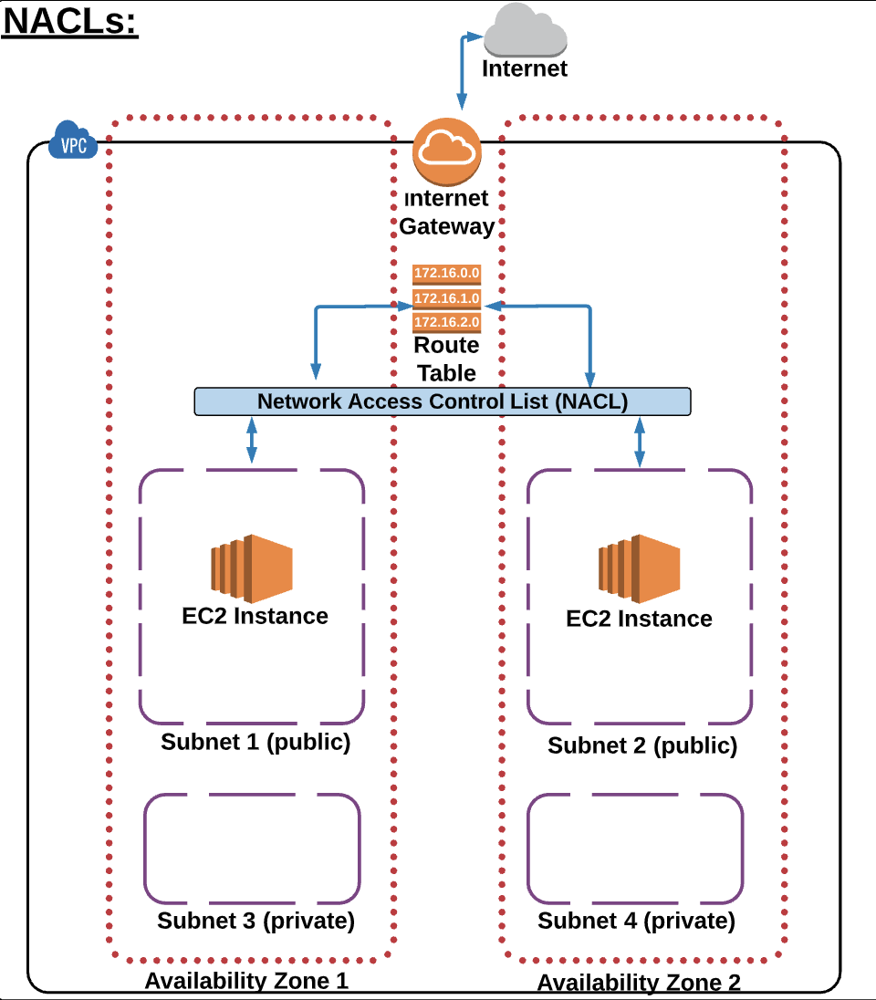 Điều quan trọng chúng ta cần hiểu đó là Network Access Control List là stateless (Không có trạng thái cố định). Tức là user phải set rule cho inbound/outbound vượt qua được NACL. Hiểu một cách đơn giản là chúng ta phải đục các lỗ ở Firewall để định tuyến cho các kết nối IN/OUT có thể vượt qua được.