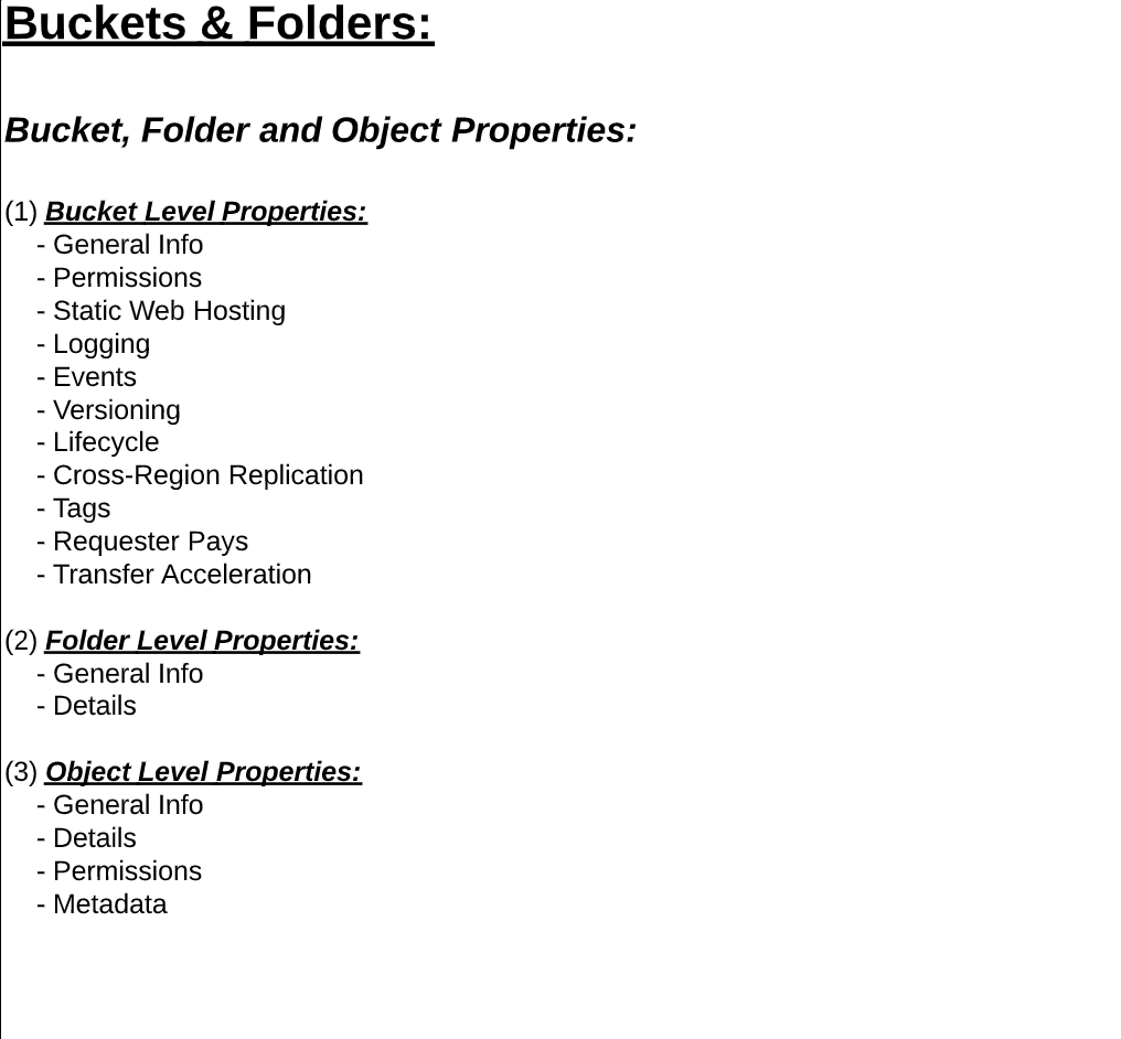 - "Folders" root level user tạo trong S3 được gọi là buckets