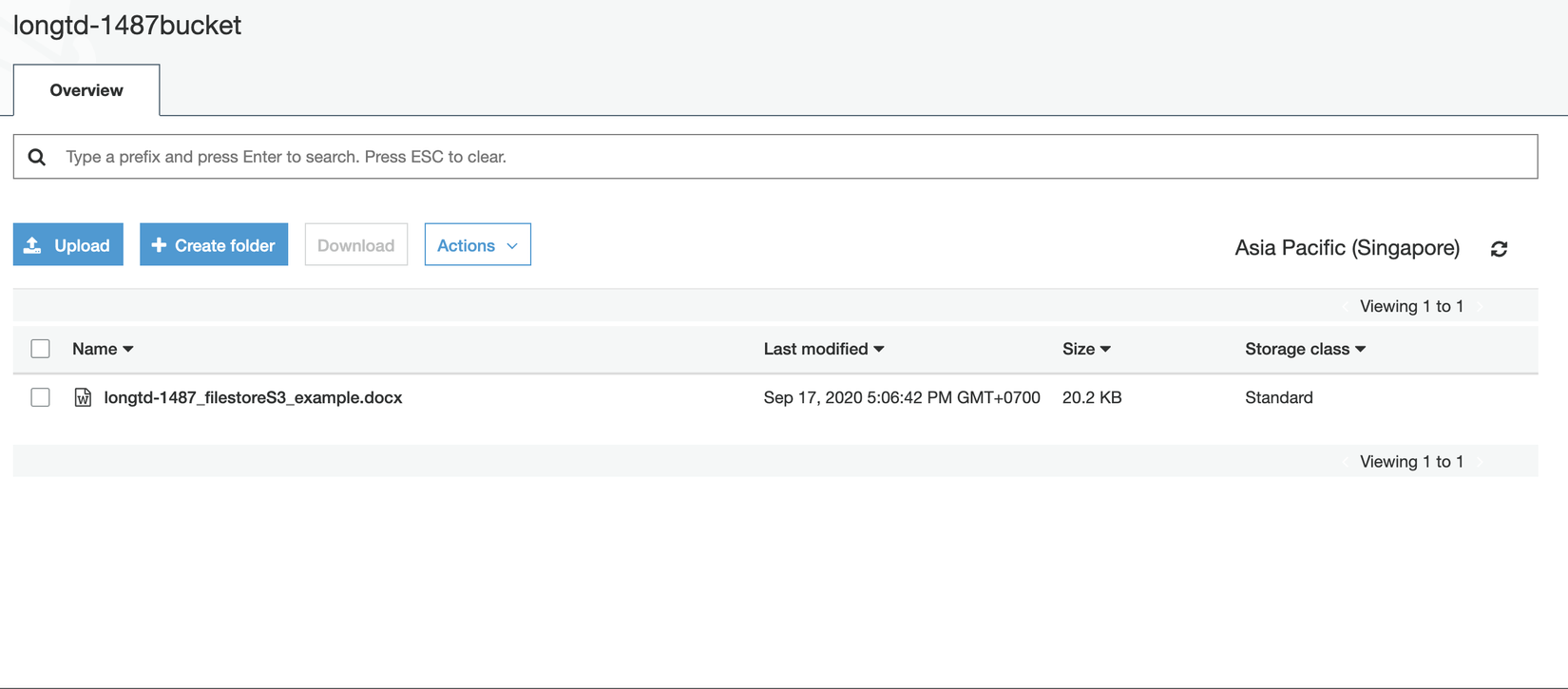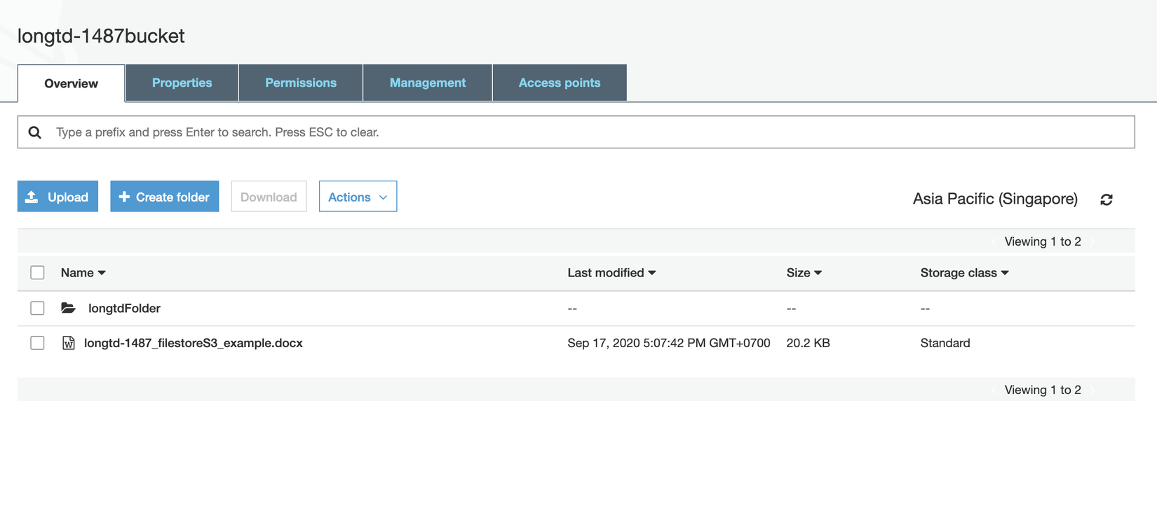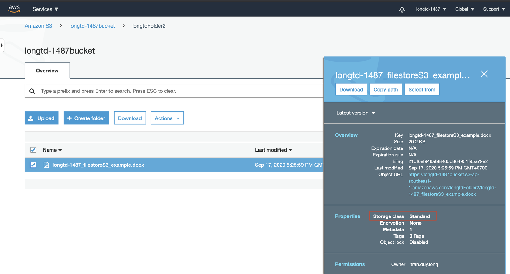 - Lúc này chúng ta sẽ có Object được store trong cả subfolder và S3 Bucket. Chúng ta không nhất thiết phải tạo folder để upload file mà có thể upload trực tiếp vào S3 Bucket, nhưng như vậy sẽ khó quản lý hơn.