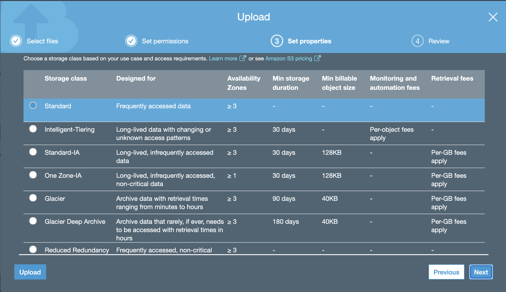 Có một điều chúng ta cần chú ý đó là S3 pricing dựa trên Storage Class: