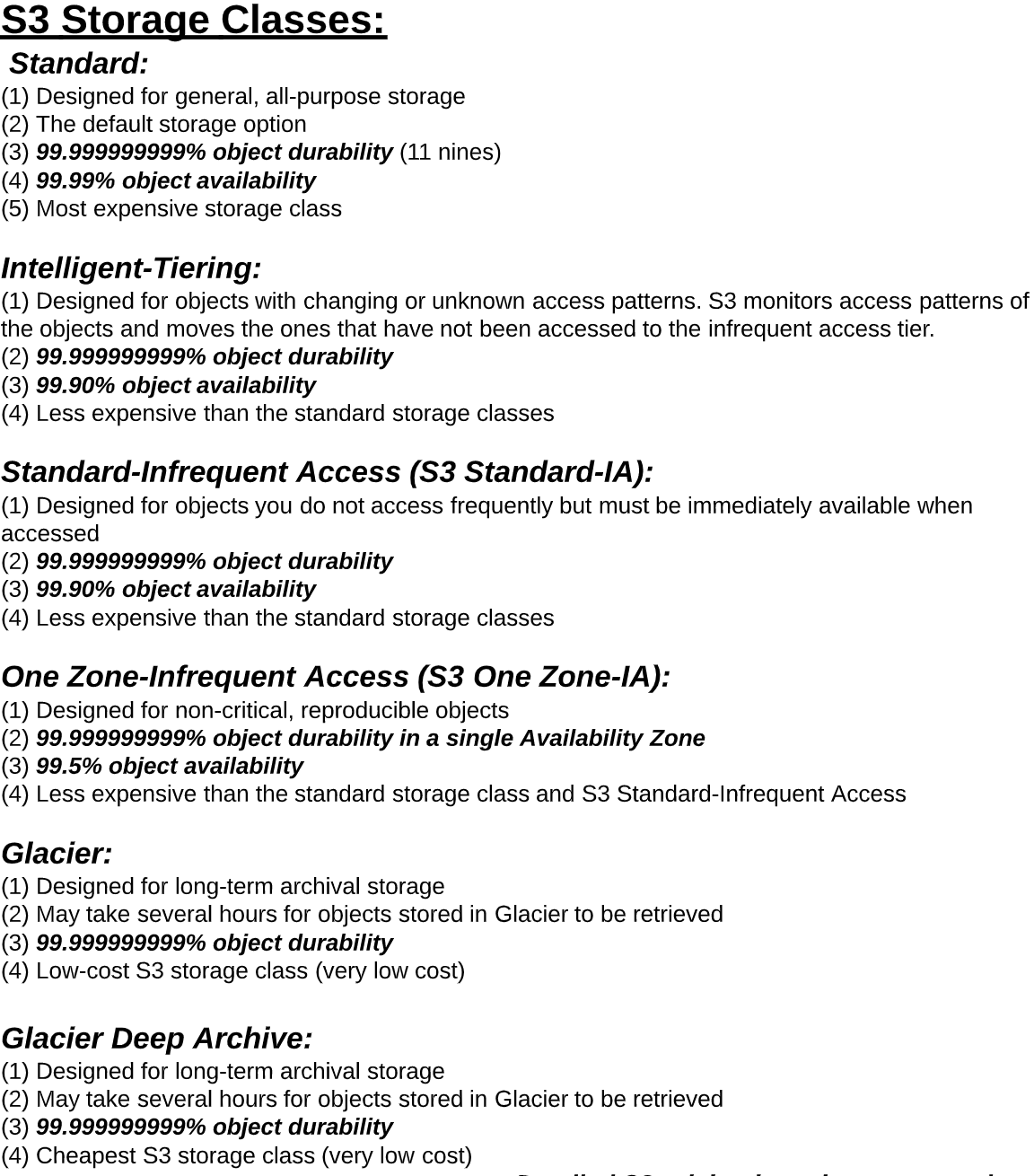 3.1.1 Mỗi storage class được coi là class phân loại được assign cho mỗi Object trên S3