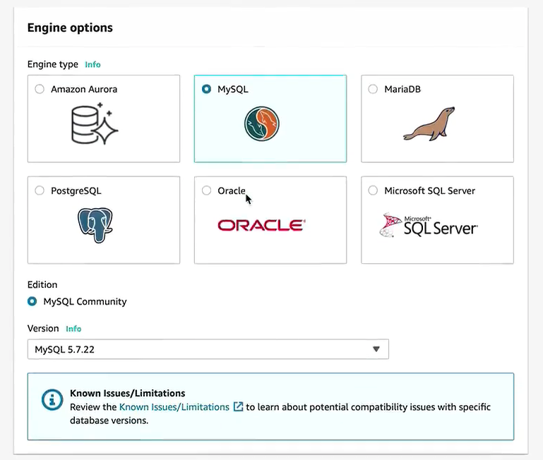 - Đối với Free Tier Engine, tiến hành chọn **MySQL → Dev/Test Option **