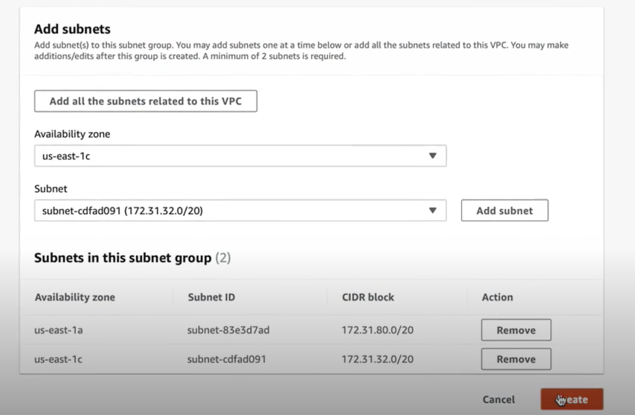 Trong RDS, chúng ta cần tạo subnet group chưa 2 private subnet.