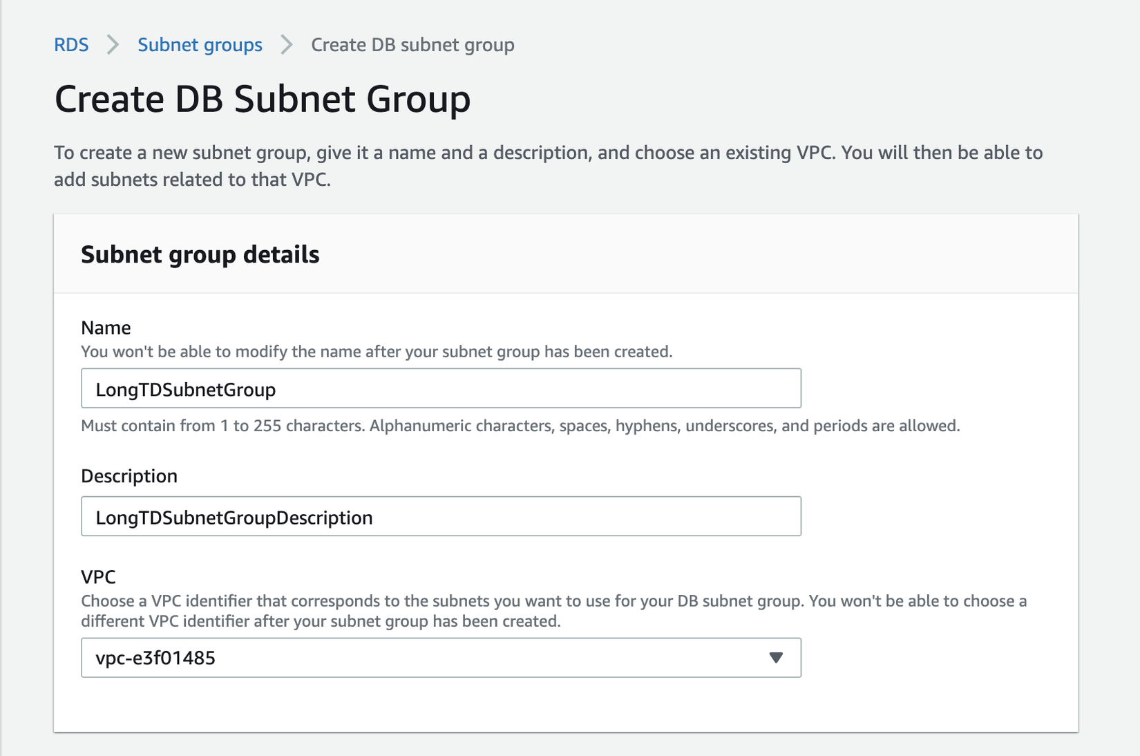 - Navigate (Điều hướng) Subnet Group Chọn Subnet Group trong màn hình setting RDS