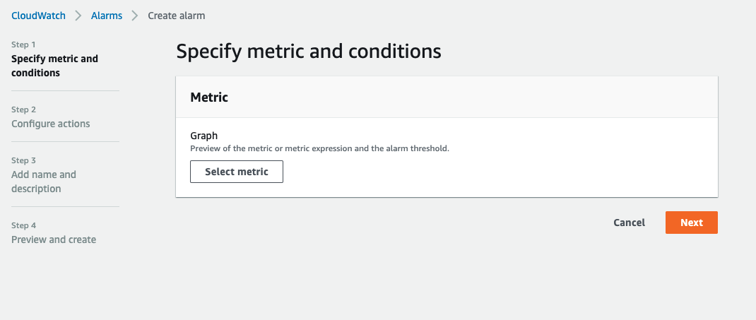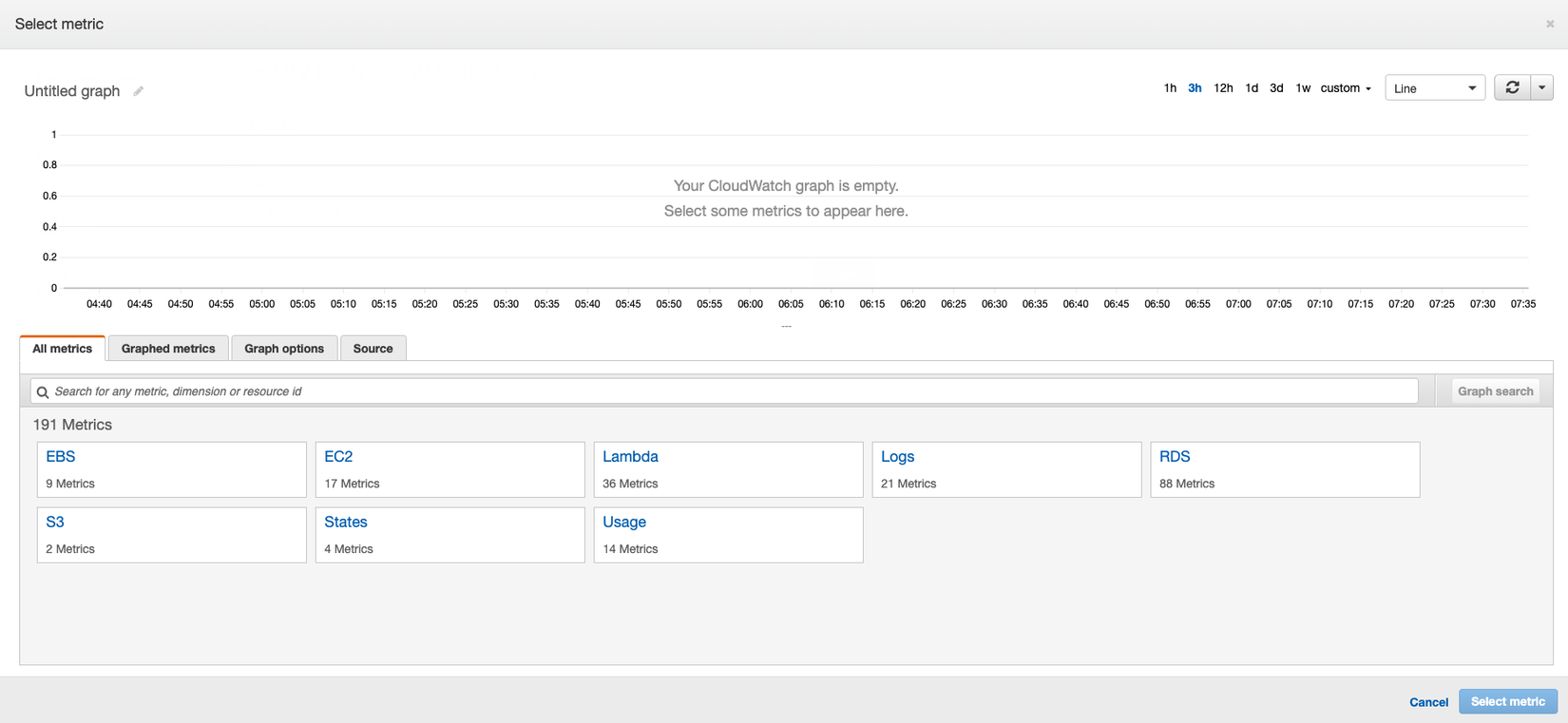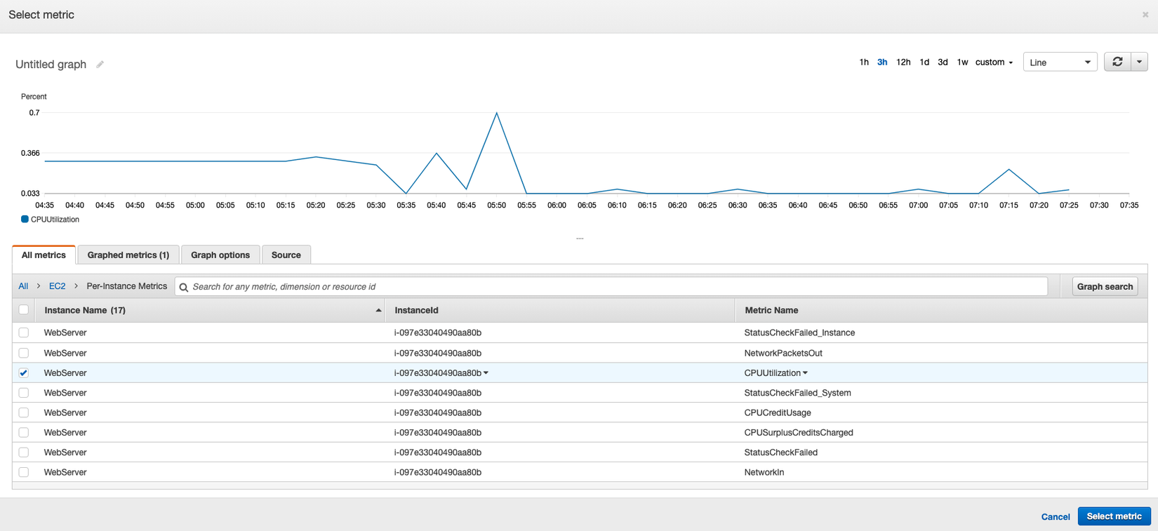 - Chọn một metrics cần giám sát (VD: EC2 và CPU Ultilization)
