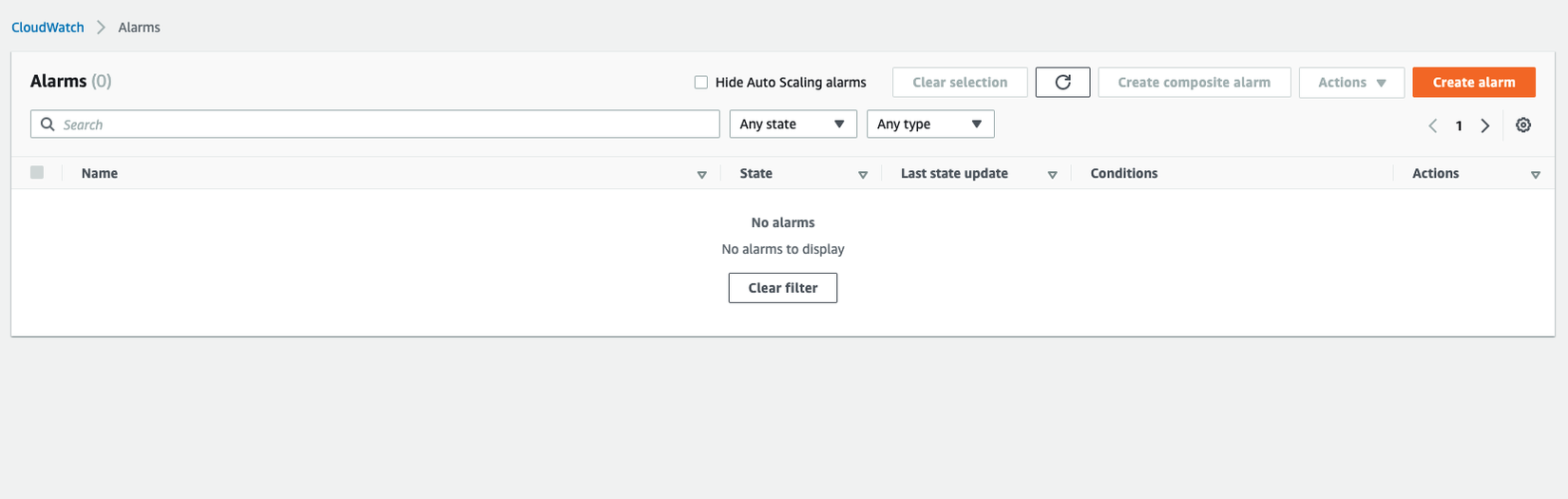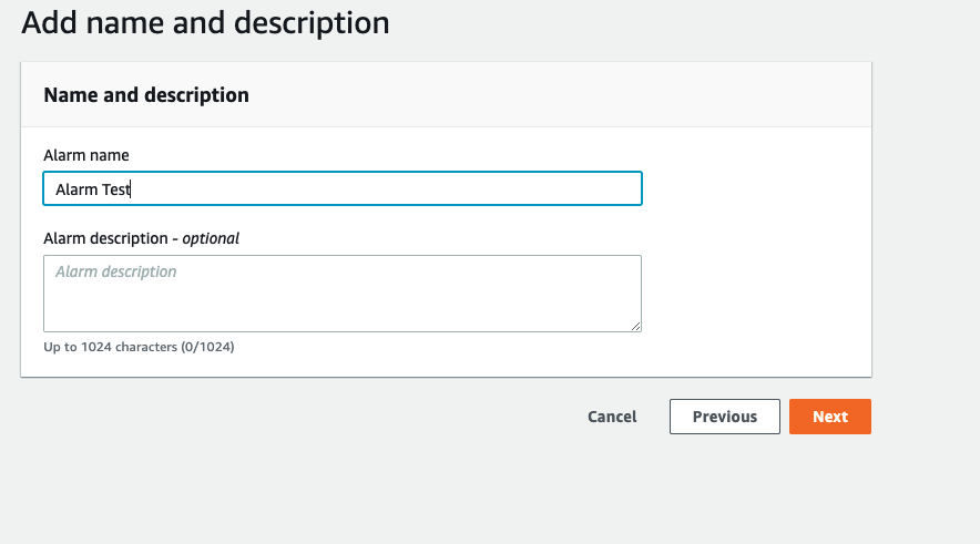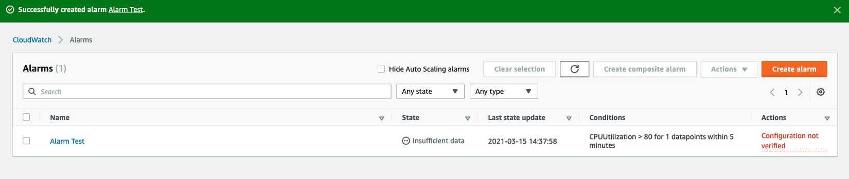 - Chọn Alarms trên thanh navigation, và chọn Create Alarm