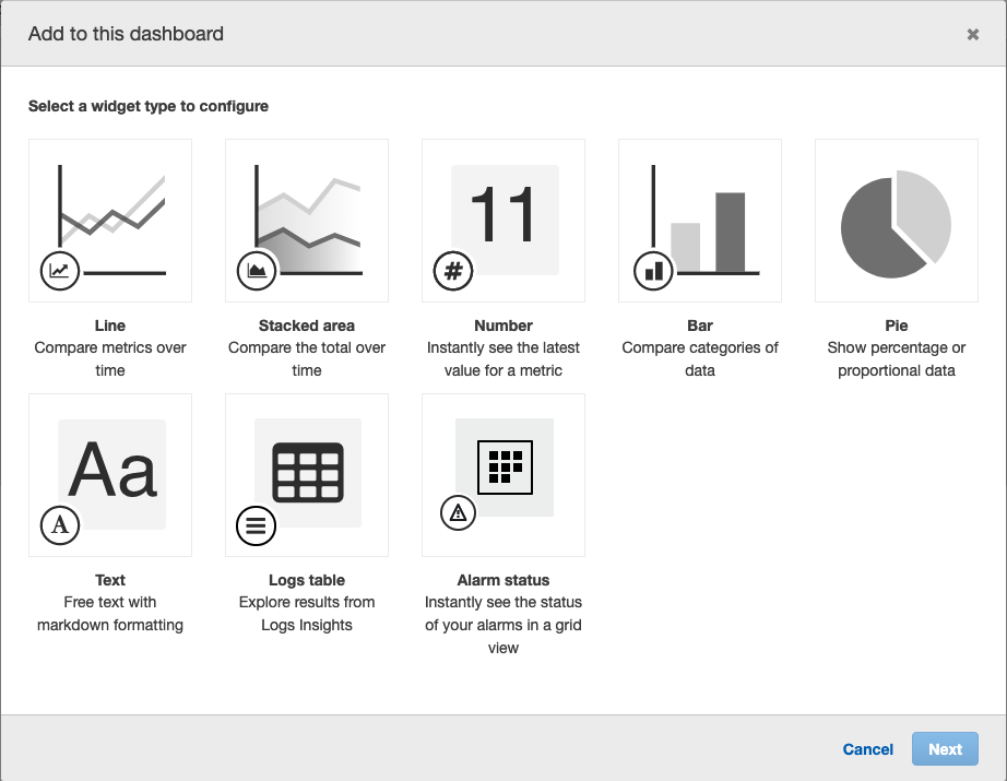 - Chọn available metrics và chọn metrics cần add vào dashboard
