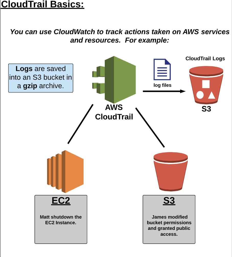 CloudTrails có thể tracking được hoạt động của toàn bộ user sử dụng AWS, toàn bộ log được lưu trữ dưới định dạng file .gz trên S3