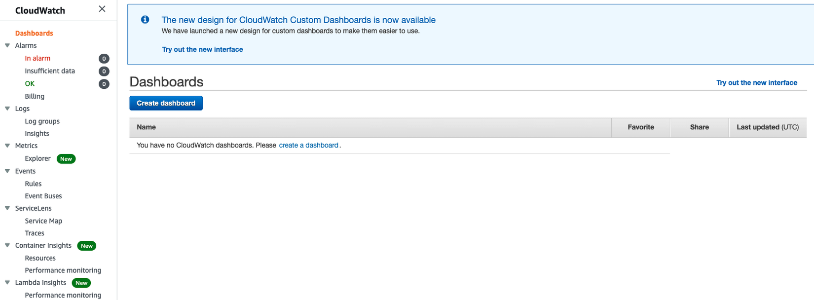 - Chọn Dashboards trên thanh navigations và click Create dashboard và add name