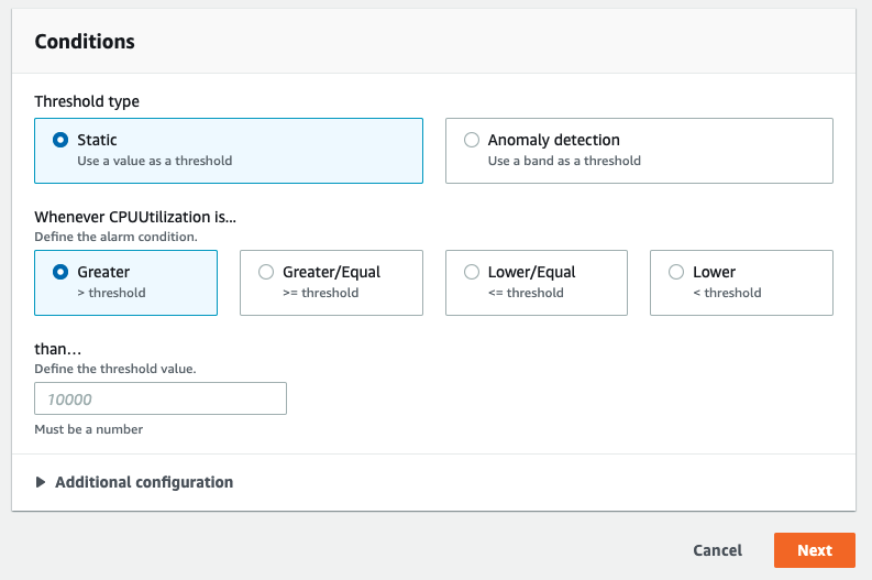 Ví dụ các bước tạo một Cloudwatch Alarm cho EC2 CPU Ultilization
