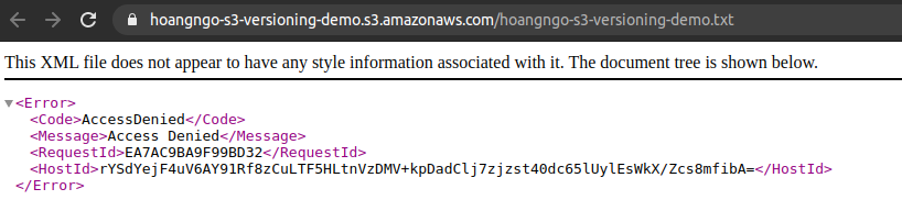 Cho nên rốt cuộc khi thử click vào url của file để xem thử nội dung file demo thì vẫn dính lỗi Access Denied