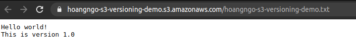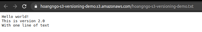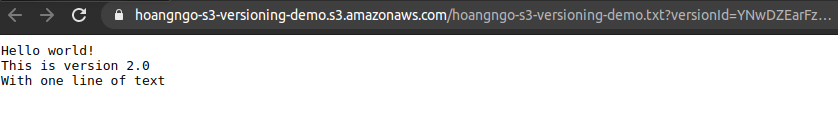 - Thử click vào version thứ 2, ta có thể thấy được object này vẫn có url để access như bình thường, chỉ có điều ở url này sẽ được gán thêm version id