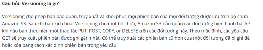 - Với các lợi điểm như vậy, hẳn sẽ có nhiều use case để chúng ta có thể cân nhắc sử dụng S3 Versioning trong các ứng dụng thực tế.