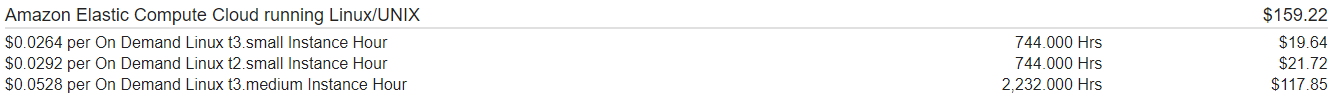 Chi tiết ở ví dụ trên, chúng ta có 1 x t3.small + 1 x t2.small + 3 x t3.medium :