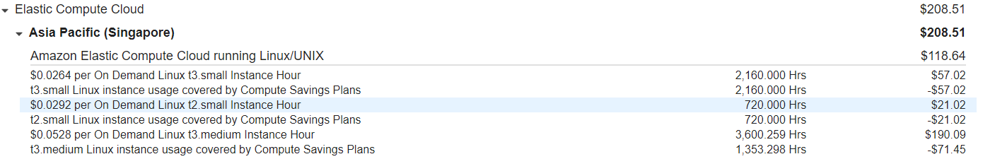 Bill hàng tháng khi sử dụng Saving Plans :