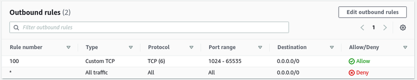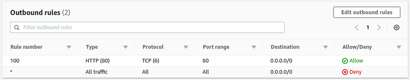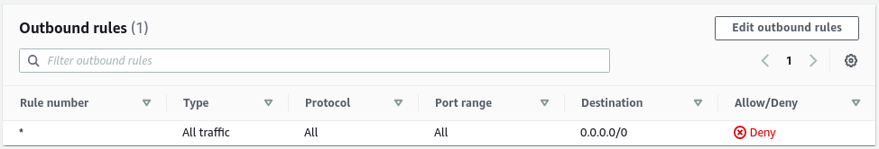 Mặc định khi tạo NACL, sẽ có một outbound rule mặc định chặn tất cả các traffic từ trong subnet ra.