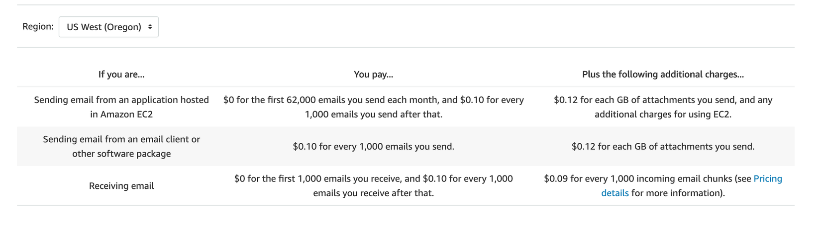 Nếu bạn deploy ứng dụng lên EC2 (kể cả Free Usage Tier) và send mail từ đó sử dụng SES thì có thể gửi tới 62k email mà không mất phí