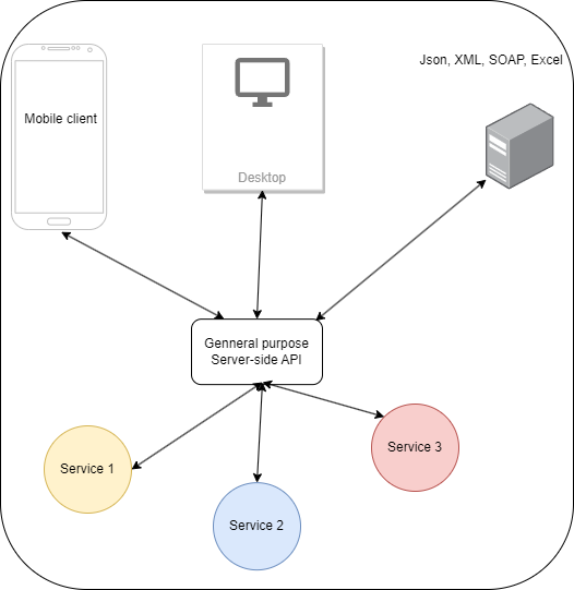 Thông thường ý tưởng của người phát triển ban đầu sẽ xuất phát sử dụng "A genneral purpose API backend"