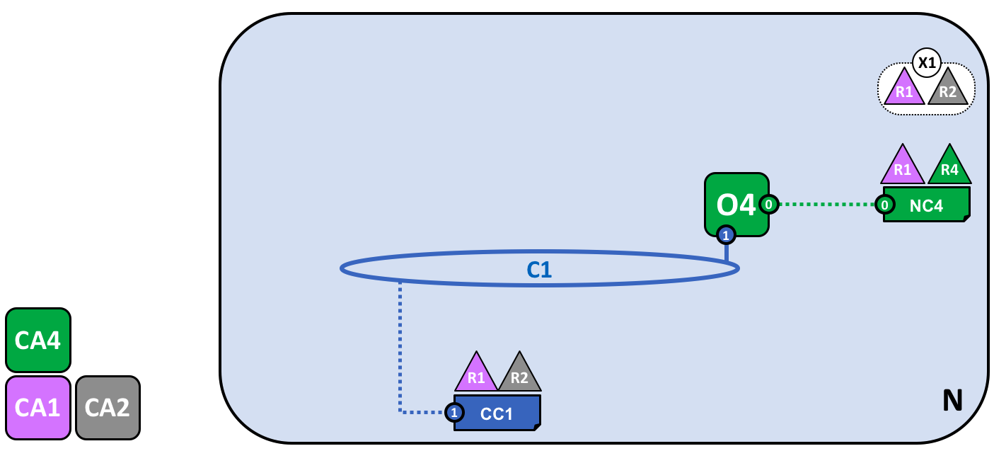 Tổ chức R4 cập nhật cấu hình mạng NC4 để thêm tổ chức R1 làm quản trị viên. Sau thời điểm này, R1 và R4 có quyền ngang nhau đối với cấu hình mạng.